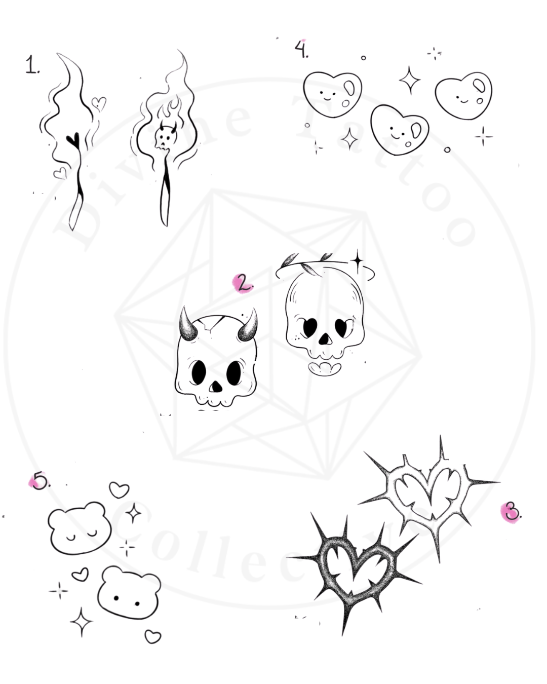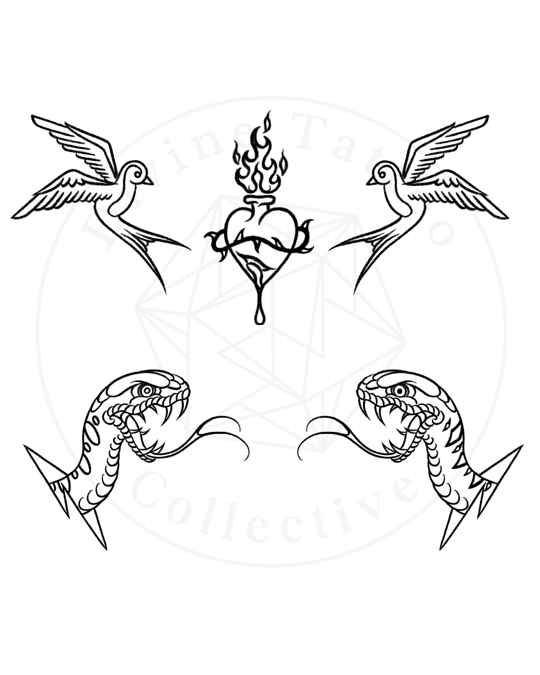 Flash tattoos are pre designed pieces created by our artists and available year round. Because the designs are already drawn and ready to tattoo, they’re offered at a lower price than custom work. Flash is perfect for anyone looking for quality artwork, quicker sessions, and timeless designs at an accessible price point. DM us on Instagram to book! (@divinetattoocollective)